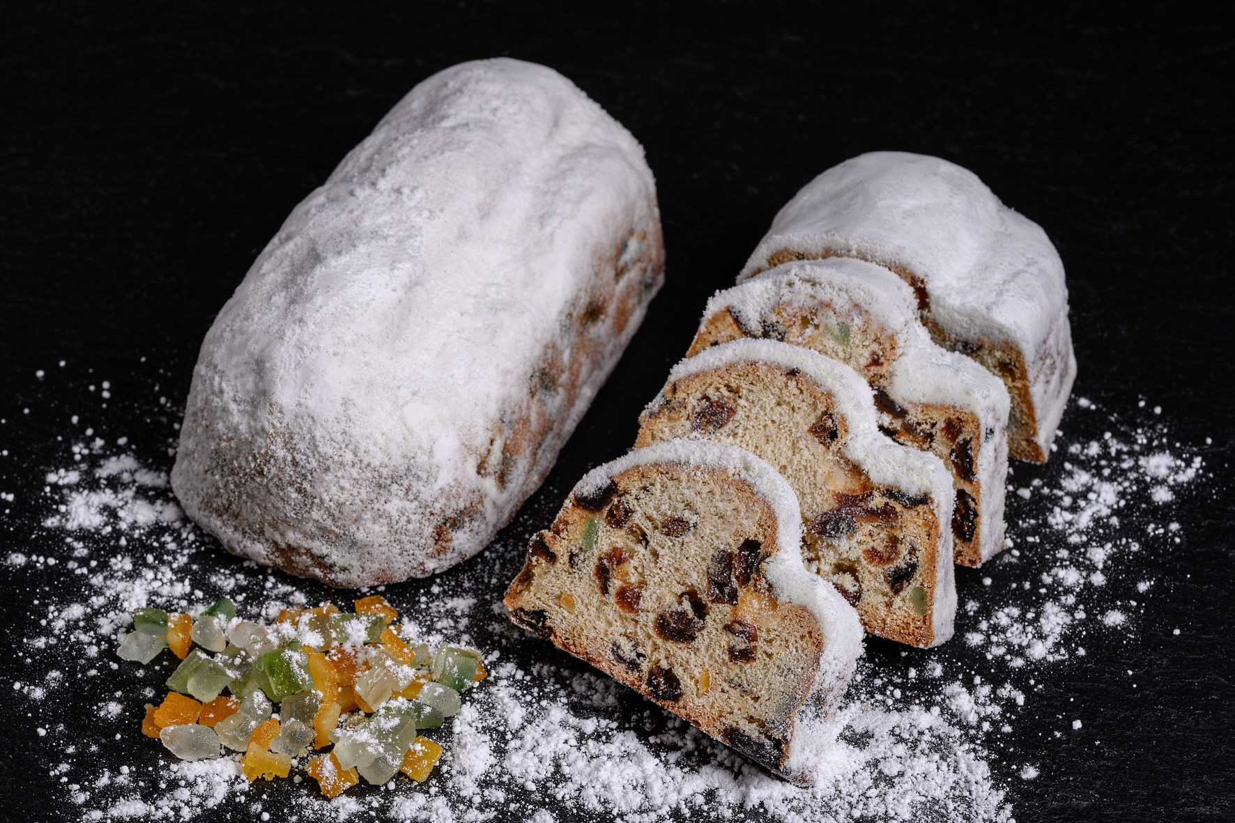Unser Nürnberger Butterstollen 250g wird nach traditionellem Konditor-Rezept gebacken. Gefüllt mit saftigen Sultaninen und kandierten Früchten wird er mit Butter verfeinert und von Puderzucker gekrönt. Was wäre Weihnachten ohne einen Stollen.