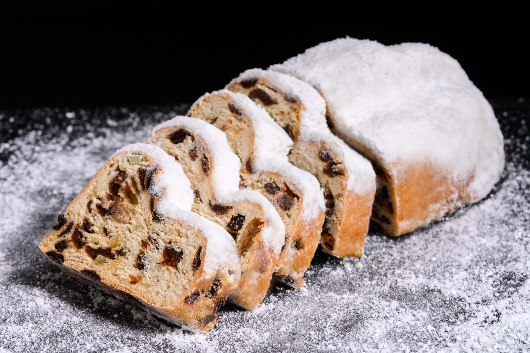 Unser Nürnberger Christstollen 500g wird nach traditionellem Konditor-Rezept gebacken.Gefüllt mit saftigen Sultaninen und kandierten Früchten wird er von Puderzucker gekrönt. Was wäre Weihnachten ohne einen Stollen.