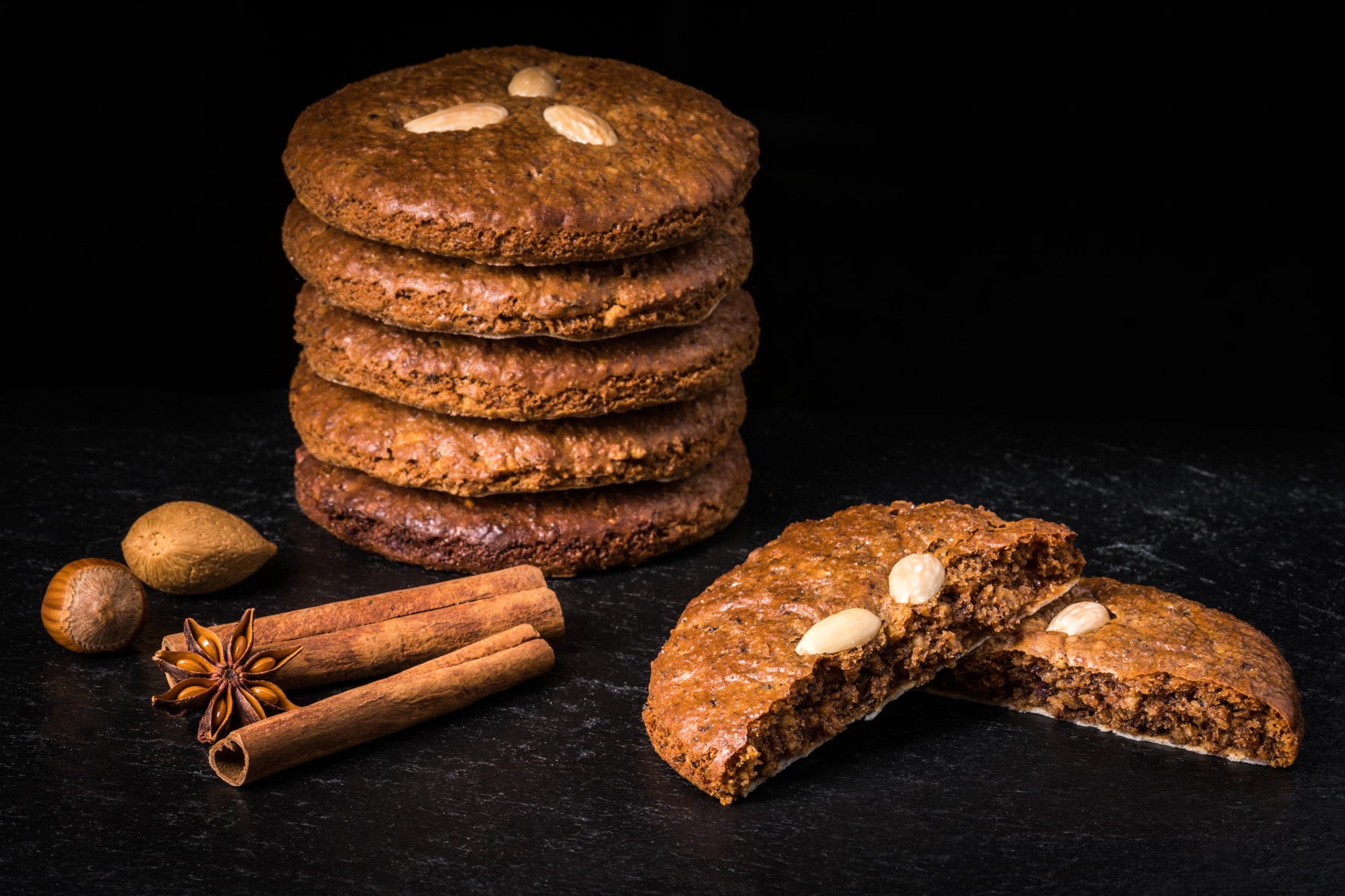 Haselnüsse, Mandeln zusammen min. 35% (Ölsamen), Zucker, Hühnereiweiß*, Marzipan (Mandeln, Zucker, Wasser), Orangeat (Orangenschalen, Glucose-Fructose-Sirup, Säuerungsmittel: Citronensäure; Antioxidationsmittel: Schwefeldioxid), Zartbitterschokoladenkuvertüre nur bei Schokolebkuchen (Kakaomasse, Zucker, Kakaobutter, Emulgator: Sojalecithin), Weizenmehl, Honig, Aprikosenkonfitüre (Glucose-Fructose-Sirup, Aprikosen, Zucker, Geliermittel: Pektin; Säuerungsmittel: Citronensäure), Gewürze, Glucosesirup, Backtriebmittel: Ammoniumbicarbonat; Steinsalz, Oblate (Weizenmehl, Kartoffelstärke).