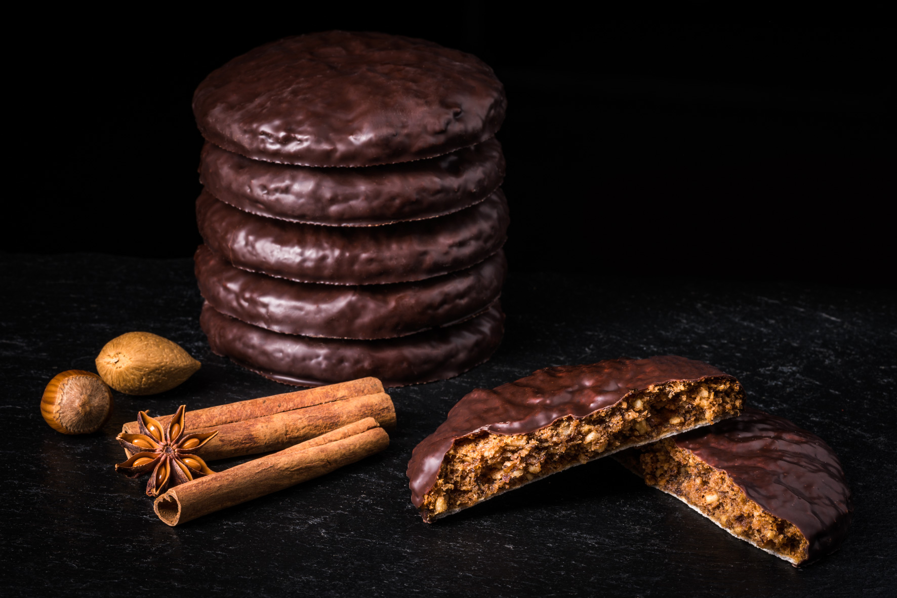 Unsere Original Nürnberger Konditoren Elisenlebkuchen schokoliert 400g, bestehen ausschließlich aus mit Zartbitterschokolade überzogenen handwerklich gefertigten Elisenlebkuchen. Hergestellt aus den feinsten Zutaten nach alt hergebrachten Rezept. Die ideale Wahl für alle „Schokoliebhaber“.